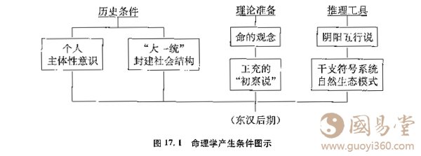 首先讨论的是产生命理学的历史土壤和理论准备。作为历史条件,最先是春秋末期士的阶层的出现。经过纷乱动荡的战国年代,这股社会内部活跃的流动成分,具有了主体性张扬的意识。接着,秦汉的封建大一统,奠定了中国农业社会的生产方式和家国同构的封建秩序,由此产生了长期稳定的社会层级结构和人际关系模式。个人主体意识的抬头、对生命的现实存在(即世俗生活)的肯定,以及可以模式化的社会背景,构成了命理学产生的历史土壤。从先秦诸子关于命的观念的议论,一直到东汉王充的."初察自然之气”的自然定命论,又为命理学的产生做好了理论准备和契人点。而古代阴阳说五行说的合流,并赋予了天于地支符号系统以中国本土自然生态的内涵,进一步为命理学准备了推理的工具。这三者可以图示如下: