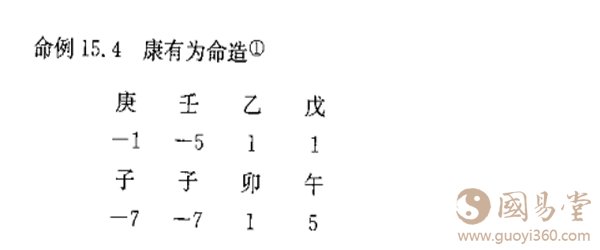 1.把八字中所含的阴阳气含标记出来,比如近代康有为的命造: